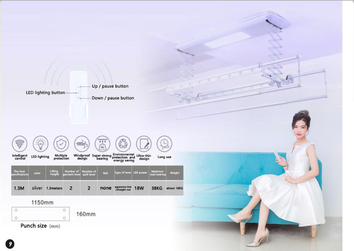 5.Space saving design, electric clothes airer can be easily installed on the ceiling.