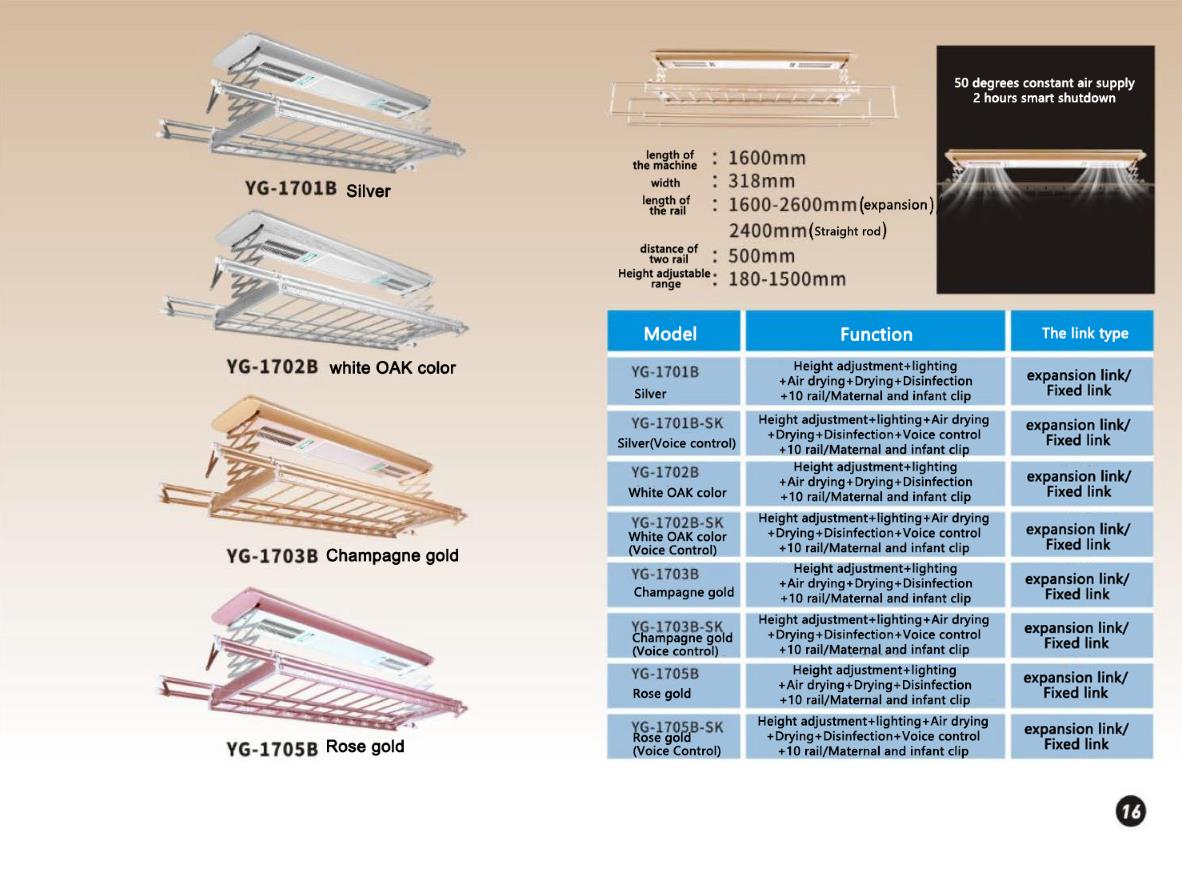 14. Natural airing Cross flow fans no only reduce the time of drying your laundry also help to circulate your home air, which works under 3 hours timer;