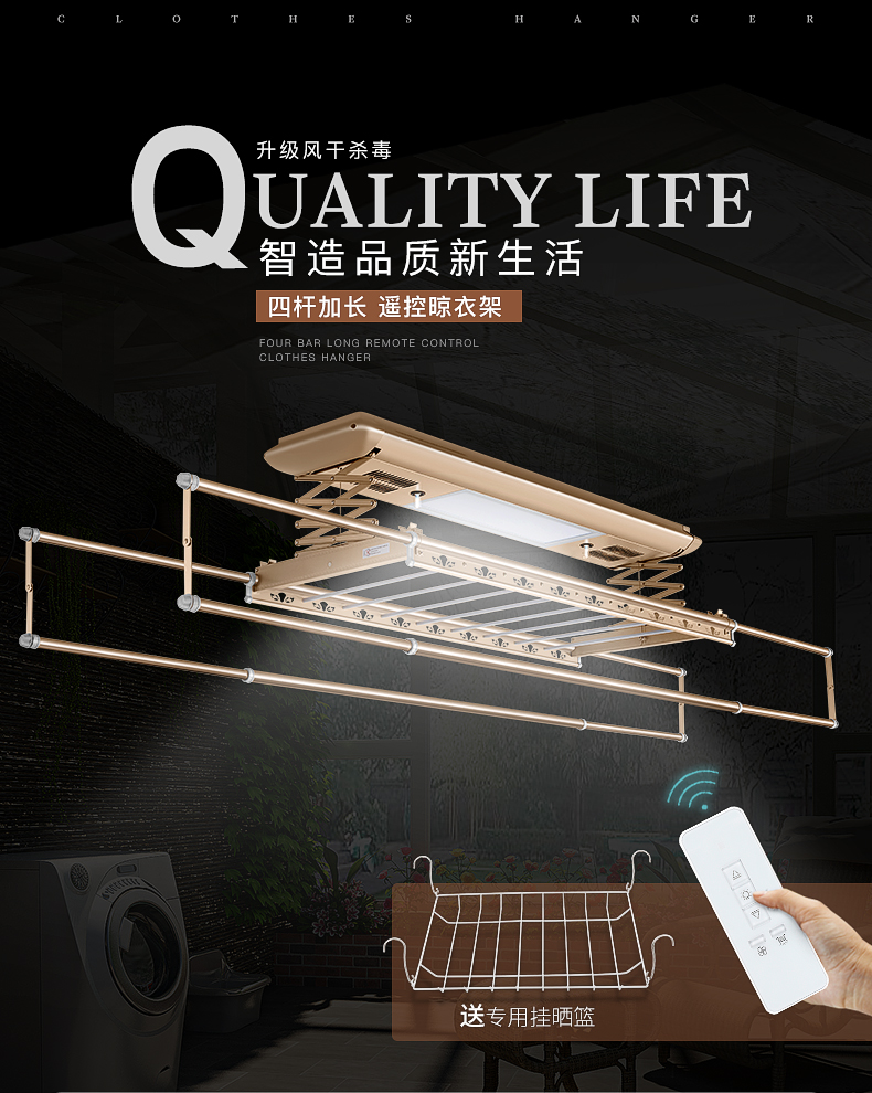 佛山電動晾衣架廠家工廠直銷電動晾衣架優(yōu)惠智能遙控聲控風干橫桿智能自動晾衣架升降