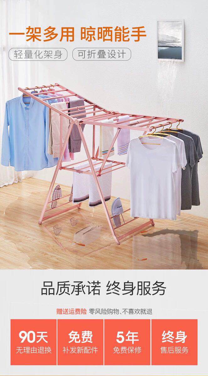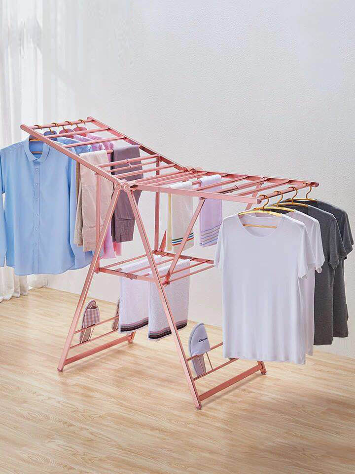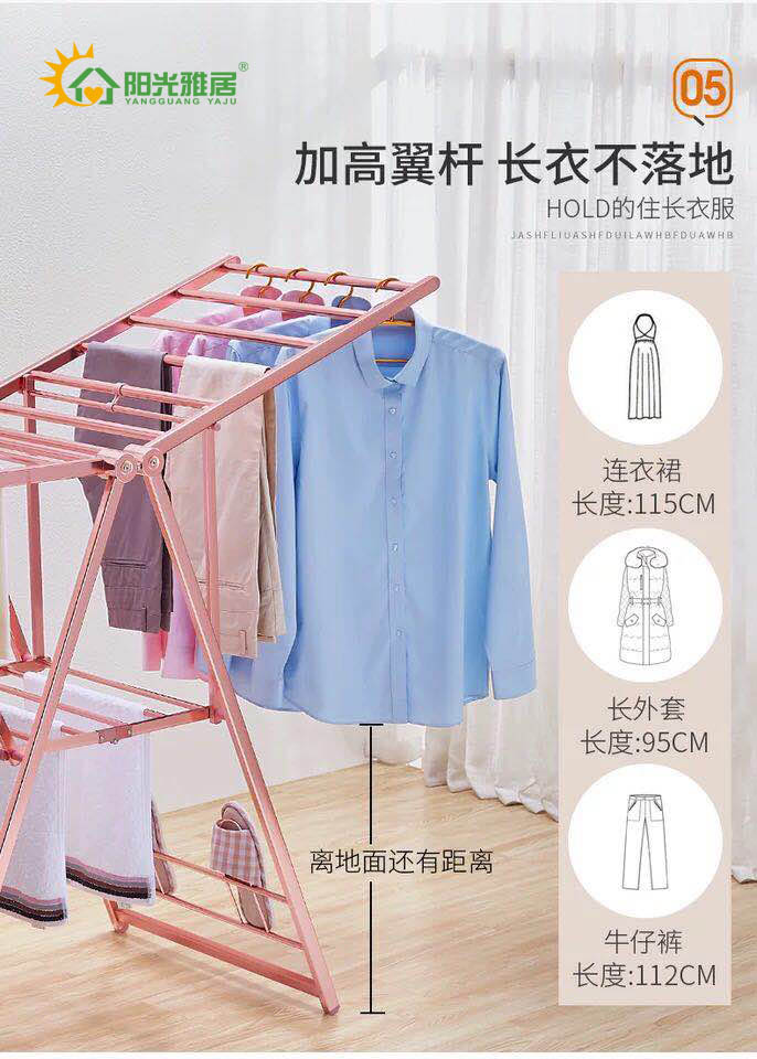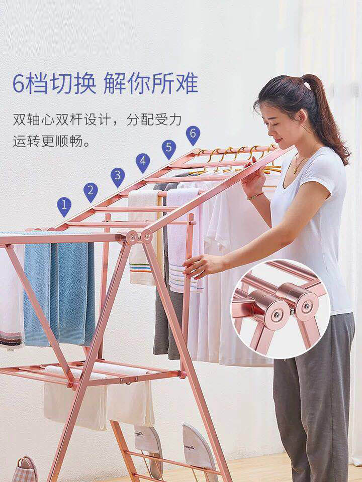 陽光雅居落地晾衣架鋁合金折疊式翼型太空鋁戶外室內雙層曬衣架