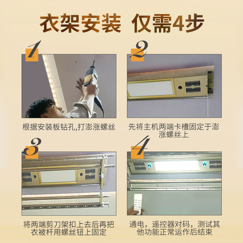 1、智能電動晾衣架有安裝定位紙板,定位方便、省事省力;