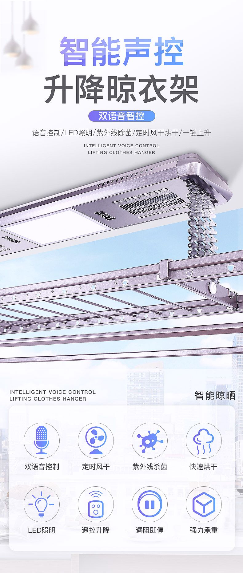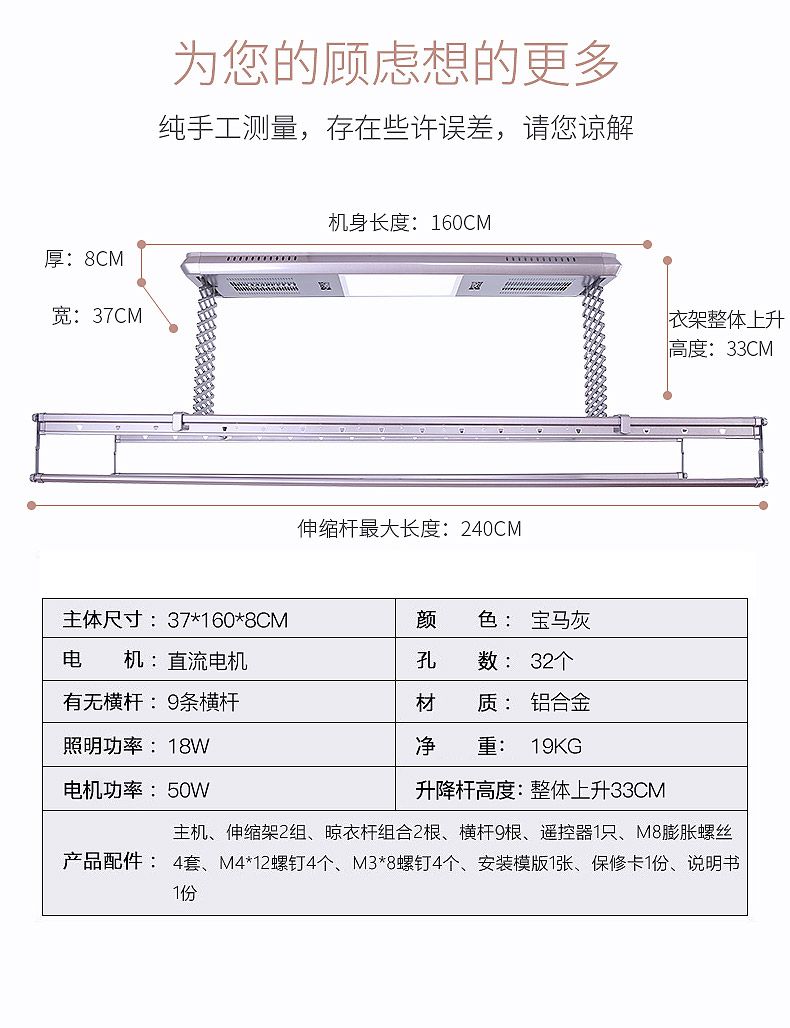 以下分享一些關于這個寶馬灰色雙語音電動晾衣架功能祥情: